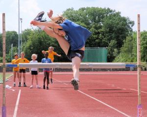 Da sich auch die Leistungen des gesamten Teams auf einem hohen Niveau bewegten, war es am Ende keine Überraschung, dass wir auch in diesem Jahr den Mannschaftspokal mit nach Steinbach nehmen konnten. Die Disziplinen, angelehnt an das neue Wettkampfkonzept des deutschen Leichtathletik Verbandes, haben alle einen eher spielerischen Charakter. 40 Meter Hindernislauf auf dem Rasen, Hochsprung in die Weitsprunggrube, Stabweitwurf. Für die Älteren ein „Biathlonwettbewerb“ (600 Meter Lauf mit zwei Wurfstationen) und für die Jüngeren eine Hindernis-Pendelstaffel.