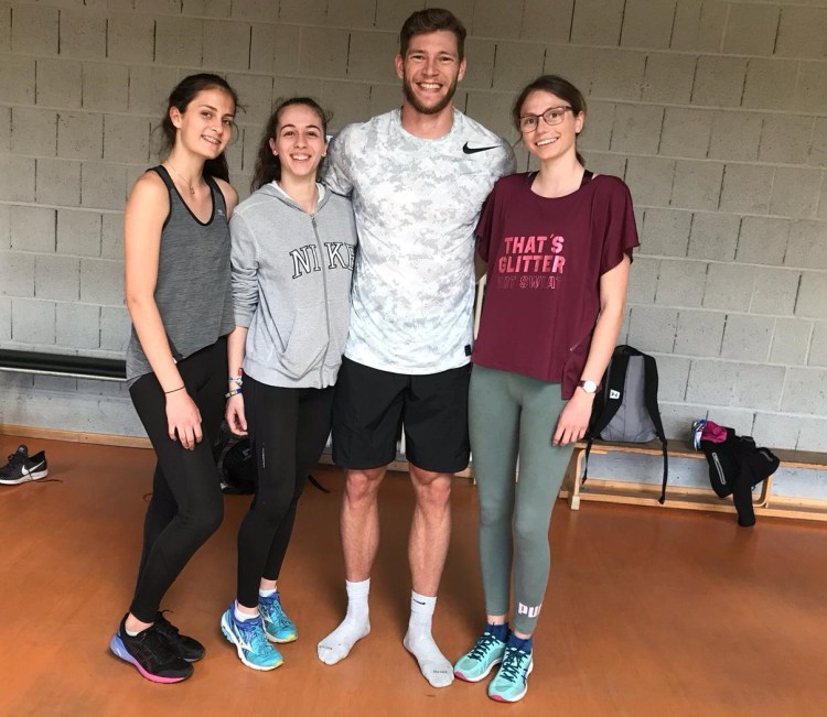 Da der Fußweg von der Jugendherberge zum Stadion und der Trainingshalle knapp 45 Minuten betrug war schon der morgendliche Anmarsch eine Trainingseinheit für sich und das Thema Grundlagenausdauer damit abgedeckt. Ansonsten standen täglich zwei längere Einheiten auf dem Programm. Im Mittelpunkt, neben einem harten Athletik- und Stabi-Pensum, die Anlaufentwicklung für die Sprungdisziplinen und die ersten Starts aus dem Block für die Hürdensprinter. Die Werfer hatten Gelegenheit mit Landes-, und neuerdings auch Bundestrainer, Lutz Klemm Speer und Diskus zu werfen. Toll war natürlich dabei auch Europameister Andi Hofmann beim Training zu beobachten und festzustellen, dass er ein „ganz normaler“ Athlet ist mit dem man sich einfach so unterhalten kann. Oder auch Sprinter wie Patrick Domogalla und Lisa Mayer beim Training zu beobachten. Am Ende der Tage stand dann traditionell noch einmal eine Einheit Tempoausdauer, bevor es dann wieder zurück und zum Ostereier sammeln ging.