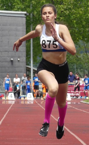 Zwei Meistertitel errang Luisa Ortanderl bei den W14 Mädchen. Sie gewann den Sprintüber 100 Meter in sehr guten 13,25 Sekunden und kam im Weitsprung erstmals über die Fünfmeter-Marke (5,05m) und gewann diese Disziplin vor Mona Strecker, die mit 4,53 Metern ebenfalls Bestweite sprang. Das Sprintfinale war im Übrigen mit mehrheitlich Steinbacher Mädels besetzt. Mona Strecker lief erstmals unter 14 Sekunden (13,95s) und wurde damit Vierte. Knapp hinter ihr ins Ziel kamen Anna Scherer (14,15s) und Annika Habicht (14,34s), die über 800 Meter auf Platz zwei lief. Gleich drei Siege feierte Helena Stojanovic in den Wurfdisziplinen. Sie gewann mit der Kugel (8,05m), dem Diskus (18,75m) und dem Speer (20,63m). Titelträgerin bei den W15 Mädchen wurde Karla Rathmer im Hochsprung mit 1,40 Meter. Noch höher einzuschätzen waren allerdings ihre 13,40 Sekunden über 100 Meter, die ihr Platz zwei eintrugen. Vierte wurde hier Ida Hünerfeld in 14,48 Sekunden, die dazu mit dem Speer auf 20,63 Meter und Rang drei kam. Auch die 4×100 Meter Staffel war an diesem Tag nicht zu schlagen. Anna Scherer, Karla Rathmer, Mona Strecker und Luisa Ortanderl ließen der Konkurrenz keine Chance und holten die Meisterschaft in 53,58 Sekunden.