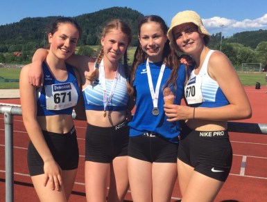 Zusammen mit Anna Scherer starteten Luisa, Mona und Karla auch in der 4×100 Meter Staffel. Nach einem tollen Lauf und sehr guten Stabübergaben, wurden sie mit einem guten vierten Rang belohnt.