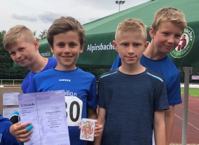 Für die Jüngsten in der U12 wurde ein Fünfkampf bestehend aus 50 Meter Sprint, 50 Meter Hürde, Weitsprung, Ballwurf und 800 Meter ausgetragen. Ein echte Herausforderung, da weder die Hürden noch die 800 Meter für jeden eine Herzensangelegenheit sind. Toll schlugen sich die SR Yburg Kids. Bei den M10 Jungs siegte Maximilian Valasek. Herausragend seine Sprintzeit von 8,04 Sekunden, sowie die 8,7 Sekunden über die Hürden und die 2:49,84 über 800 Meter. Mit sehr ausgeglichenen Leistungen wurde Jakob Bühler Vierter. Mit der zweitschnellsten Sprintzeit von 8,38 Sekunden konnte Louis Heizmann bei seinem ersten Wettkampf glänzen. Ferdinand Roth hatte seine beste Leistung mit 3.54 Metern im Weitsprung.