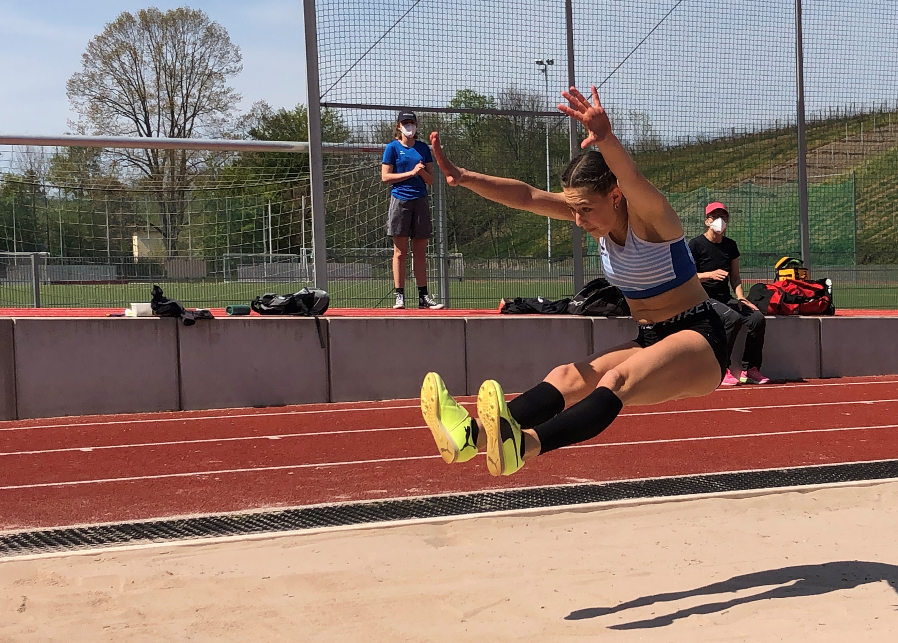 Ein großes Ausrufezeichen haben die Springer des Landesstützpunkts Mittelbaden bei ihrem Auftaktwettkampf in die Freiluftsaison im Stadion der Südbadischen Sportschule in Steinbach gesetzt. Nur die Trainingsgruppe von Steinbachs Verbandstrainerin Martha Fruchtmann, dazu drei Kampfrichter – darunter Deutschlands Chefstarterin Sara Rosch – waren zugelassen. Alle aktuell Corona getestet und, wie sich schnell herausstellte, topfit. Dazu als Kulisse die Athleten der Sprintkadergruppe von Michael Schlicksupp, die mit entsprechendem Abstand Beifall für die Springer spendeten.