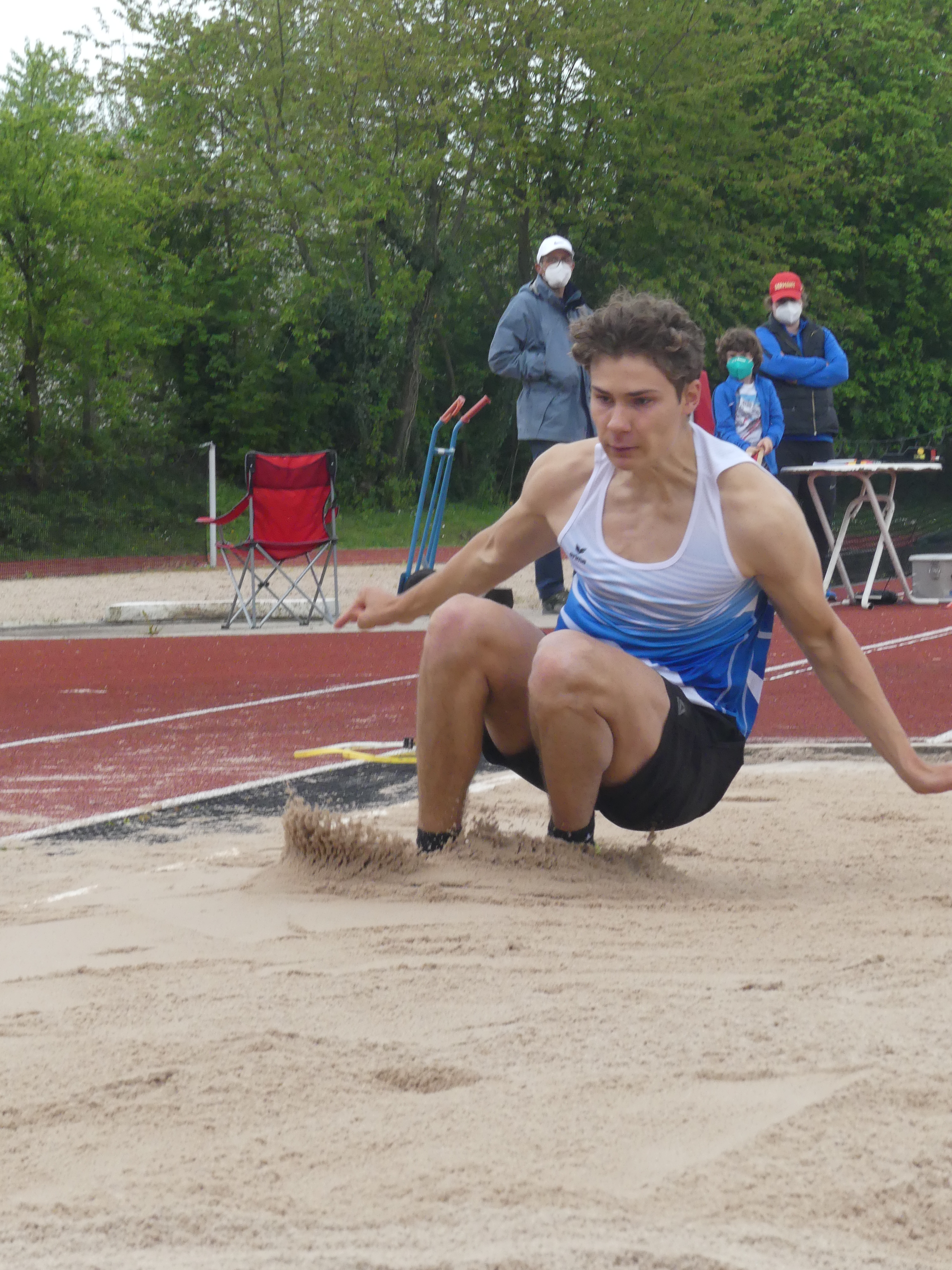 Schwerer taten sich die U20 Springer des SR Yburg. Fast zum Haare raufen war das Pech mit knapp übertretenen Sprüngen und dem noch inkonstanten Anlauf von Tim Kilka. So brachte er nur einen der sechs Versuche korrekt in die Grube. Der wurde dann mit 13,93 Metern gemessen und war sicher nicht sein weitester an diesem Tag. Zwar waren das nur 17 Zentimeter weniger als seine Bestleistung, aber er hatte sich zurecht mehr vorgestellt. Das galt auch für Lars Lawo, der nach zwei starken, aber ungültigen Sprüngen auf gemessene 13,72 Meter kam, dann aber wegen einer Fußverletzung den Wettkampf nicht voll zu Ende springen konnte. Das war dann aber auch der einzige Wermutstropfen für Trainerin Martha Fruchtmann, die sich mit ihrem Aufbautraining bislang voll bestätigt fühlen kann.