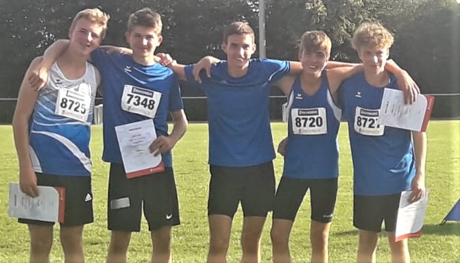 Trotz einiger starker Ergebnisse konnten die U16 Jungs nicht an das Topresultat des Vorkampfs anknüpfen. Das lag vor allem daran, dass mit Alex Senski der eifrigste Punktesammler wegen Verletzung gar nicht mit angereist war und Benjamin Redzepagic nur den Sprint absolvieren konnte. Da reichte dann auch nicht, dass Luis Quentel ausgezeichnete 5,32 Meter und Johannes Huber genau 5 Meter weit sprangen. Mit 12.08 Sekunden war Benjamin Redzepagic zweitschnellster aller 100 Meter Sprinter, aber dahinter klaffte dann doch eine Lücke von mehr als einer Sekunde für Johannes Huber und Rene Philippe Fortuna. Der lief dann über 800 Meter etwas zu schnell an, konnte sein Tempo am Ende nicht halten und kam nach 2:28.41 Minuten hinter Lukas Linder, der 2:23.04 lief, ins Ziel. Da auch bei den Jungs der Kugelstoß nicht die Paradedisziplin ist blieben hier etliche Punkte liegen, die die 4×100 Meter Staffel, ohne die drei schnellsten Sprinter, in der Besetzung Fortuna, Quentel, Huber und Lindner trotz ordentlicher 50,36 Sekunden nicht mehr ausgleichen konnte. Immerhin reichte das trotzdem zu Rang drei und die Bronzemedaille war dann eine echte Belohnung dafür, dass alle zum Saisonabschluss noch einmal richtig gut gekämpft hatten.