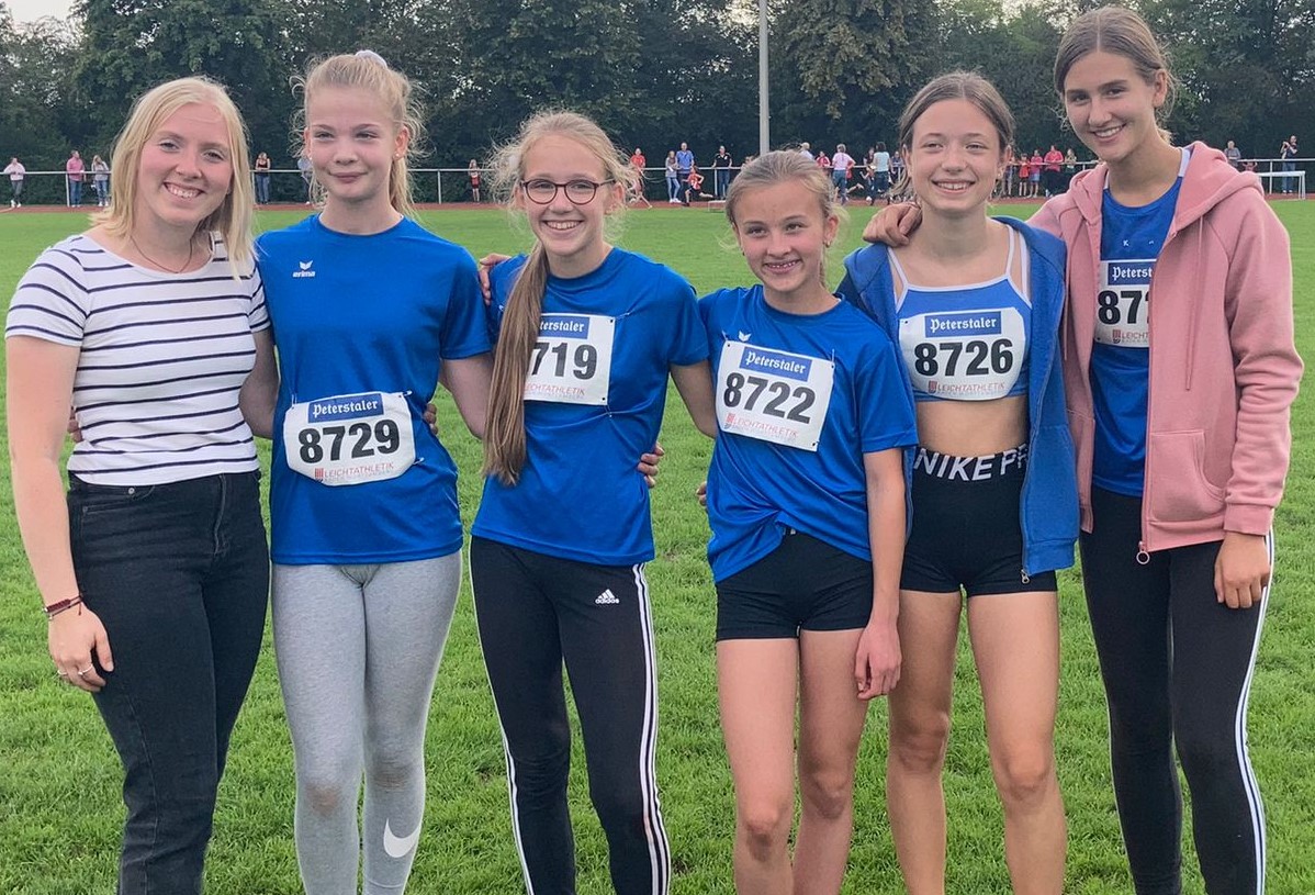 Ohne Ambitionen auf einen Medaillenplatz, aber mit sehr viel Engagement und Spaß, gingen die U14 Mädchen in Eppelheim an den Start. Mit dem Ergebnis aus dem Vorkampf lagen sie auf Rang fünf der Meldeliste. Dann aber steigerten sich fast alle zu neuen Bestleistungen. Emilia Frey sprintete die 75 Meter in starken 10.71 Sekunden und verbesserte ihre Bestzeit um 15/100 Sekunden. Lotta Neuhoff, lief mit 10.81 Sekunden knapp an ihrer Bestzeit vorbei und auch Kayla von der Heydt, ein Jahr jünger als die beiden anderen kam mit 11.29 Sekunden immer noch auf eine prima Zeit. Im Weitsprung steigerten sich Emila Frey und Leni Falk auf je 4.21 Meter, Luisa Grammenos kam auf gute 4.07 Meter. Das gab schon mal eine Menge Punkte. Dass der Ballwurf nicht die Topdisziplin sein würde, war klar. Dass Leni Falk sich dann aber auf 33 Meter, Kayla von der Heydt auf 25 Meter und Luisa Grammenos auf 23 Meter steigern konnte, lieferte den Baustein für die spätere Medaillenplatzierung. Der Höhepunkt war dann aber die 4×75 Meter Staffel mit Leni, Emilia, Lotta und Kayla. Die vier liefen der Konkurrenz Meter weit davon und erzielten mit 41,37 Sekunden eine sehr starke Zeit. Sehr zur Freude von Trainerin Jana Seifermann, die die Stabwechsel mit den Mädels vorher etliche Male geübt hatte. Das katapultierte das Team dann von Rang vier auf Platz zwei und löste entsprechend Begeisterung aus.