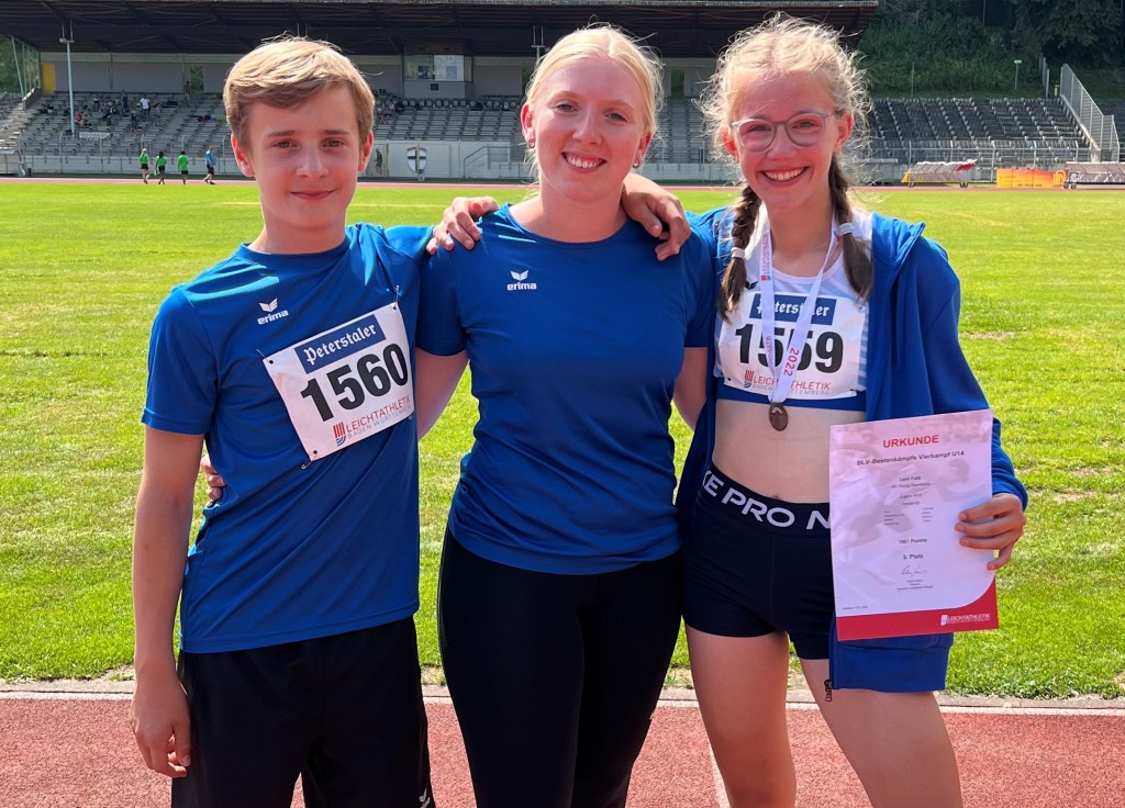 Richtig gut lief es für Leni. Im 75 Meter Sprint konnte sie im Vergleich mit den Kreistitelkämpfen gleich ein paar Punkte drauflegen und kam mit 10,25 Sekunden auf die zweitschnellste Zeit aller Teilnehmerinnen. Auch im Weitsprung zeigte sie ansteigende Form und verbesserte ihre Bestweite auf 4,50 Meter. Leider lies sie im Ballwurf mit 33,5 Metern ein paar Punkte liegen. Die glich sie aber mit einer neuen Bestleistung von 1.40 Metern im Hochsprung mehr als aus. Am Ende standen mit 1861 Punkten 40 Zähler mehr als in Durmersheim in der Ergebnisliste. Das allein war schon toll. Dass sie damit bei ihrer ersten Badischen Meisterschaft auch noch mit der Bronzemedaille dekoriert wurde, machte die Sache perfekt.