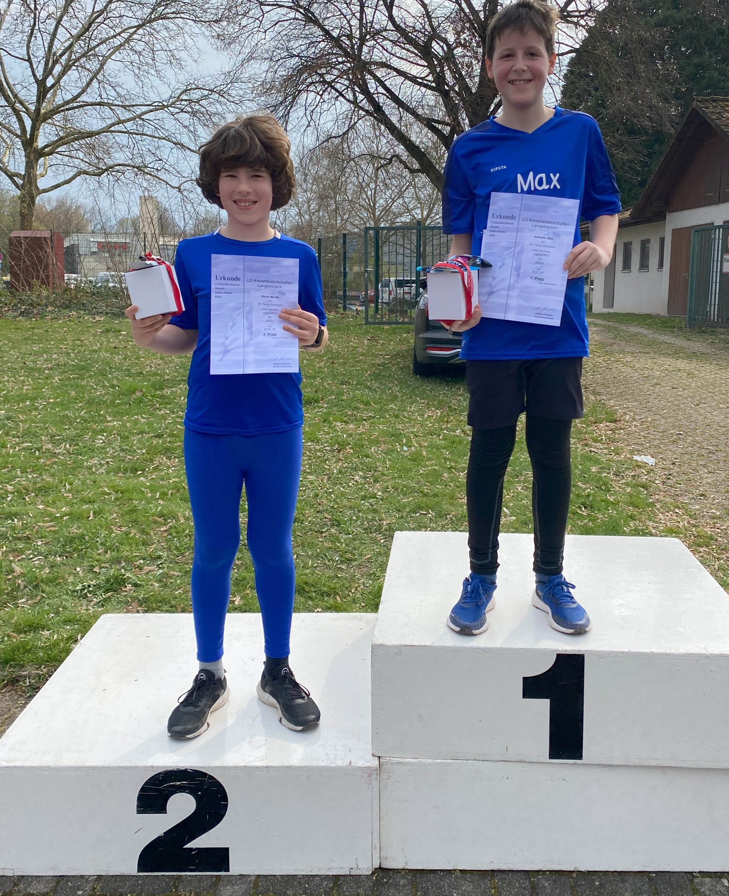Keine Konkurrenz hatten Max Schäfer und Moritz Rosch in der Altersklasse M12. Sie teilten sich ihre Kräfte gut ein, wobei Moritz ein bisschen früh den Kontakt zu Max abreißen lassen musste. Am Ende konnten sich beide über ihre Podestplätze und Siegerpräsente freuen.