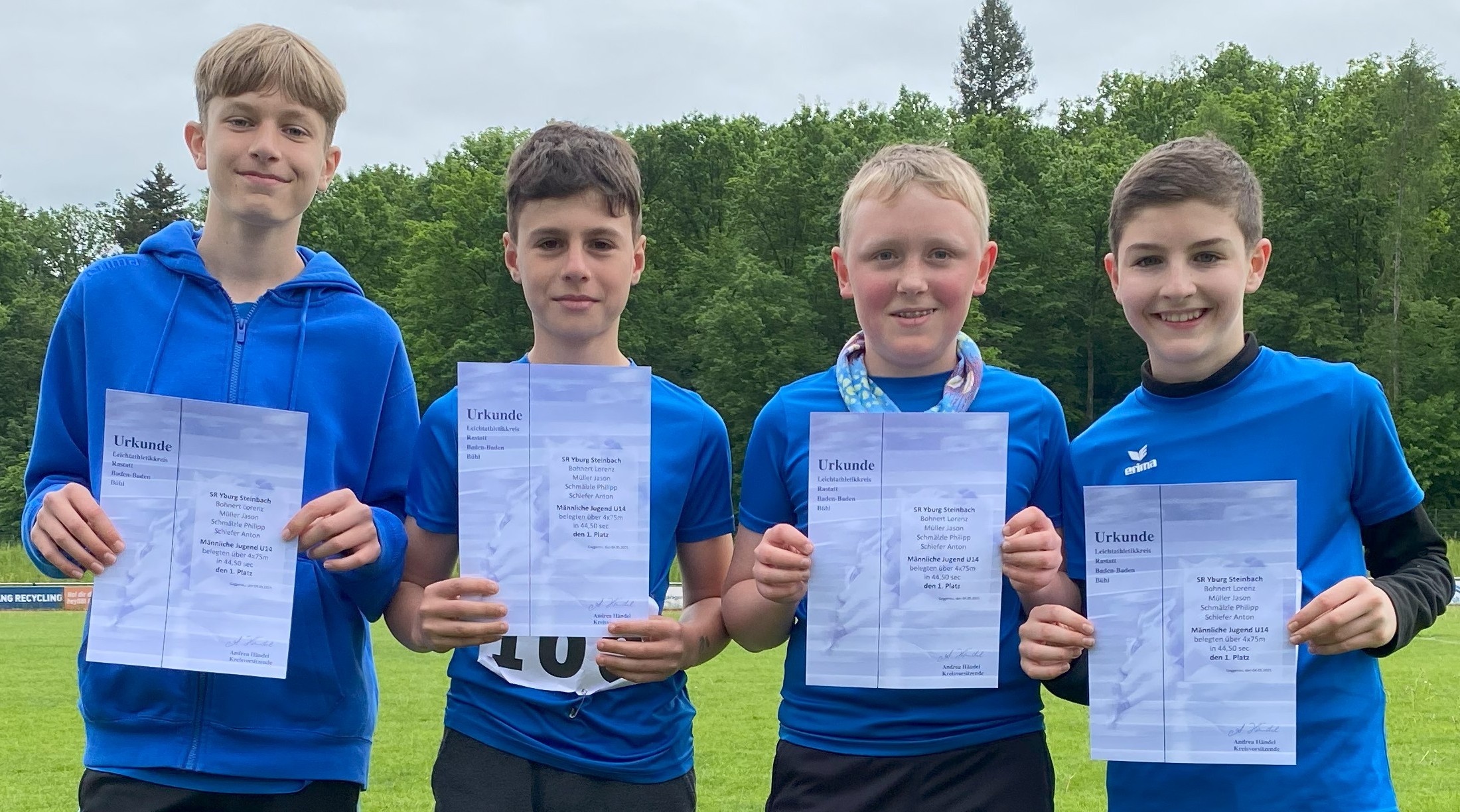 Anton Schiefer erwies sich wieder einmal als der Schnellste (10,60 Sekunden) und als bester Weitspringer (4,35 Meter). Im Ballwurf erzielte er mit 36,5 Metern zusammen mit Philipp Schmälzle die zweitbeste Weite. Sieger im Hochsprung wurde Niklas Winterberg mit der neuen persönlichen Bestleistung von 1,34 Metern, vor Anton Schiefer und Lorenz Bohnert. Jason Müller erzielte sowohl im Sprint (11,77 s) und im Ballwurf mit 35 Metern jeweils als Vierter gute Ergebnisse. Einen zweiten Rang erreichte Janus Schell nach einem mutigen Lauf über 800 Meter in 3:02,29 Minuten.