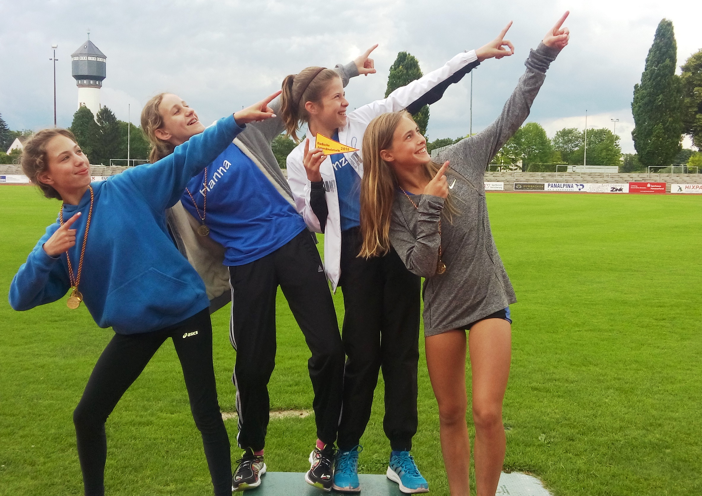 Vorheriges Bild Nächstes Bild Meistermannschaft U14 Badischer Mannschaftsmeister im Vierkampf: (von links) Rachel, Hanna, Franzi, Celine