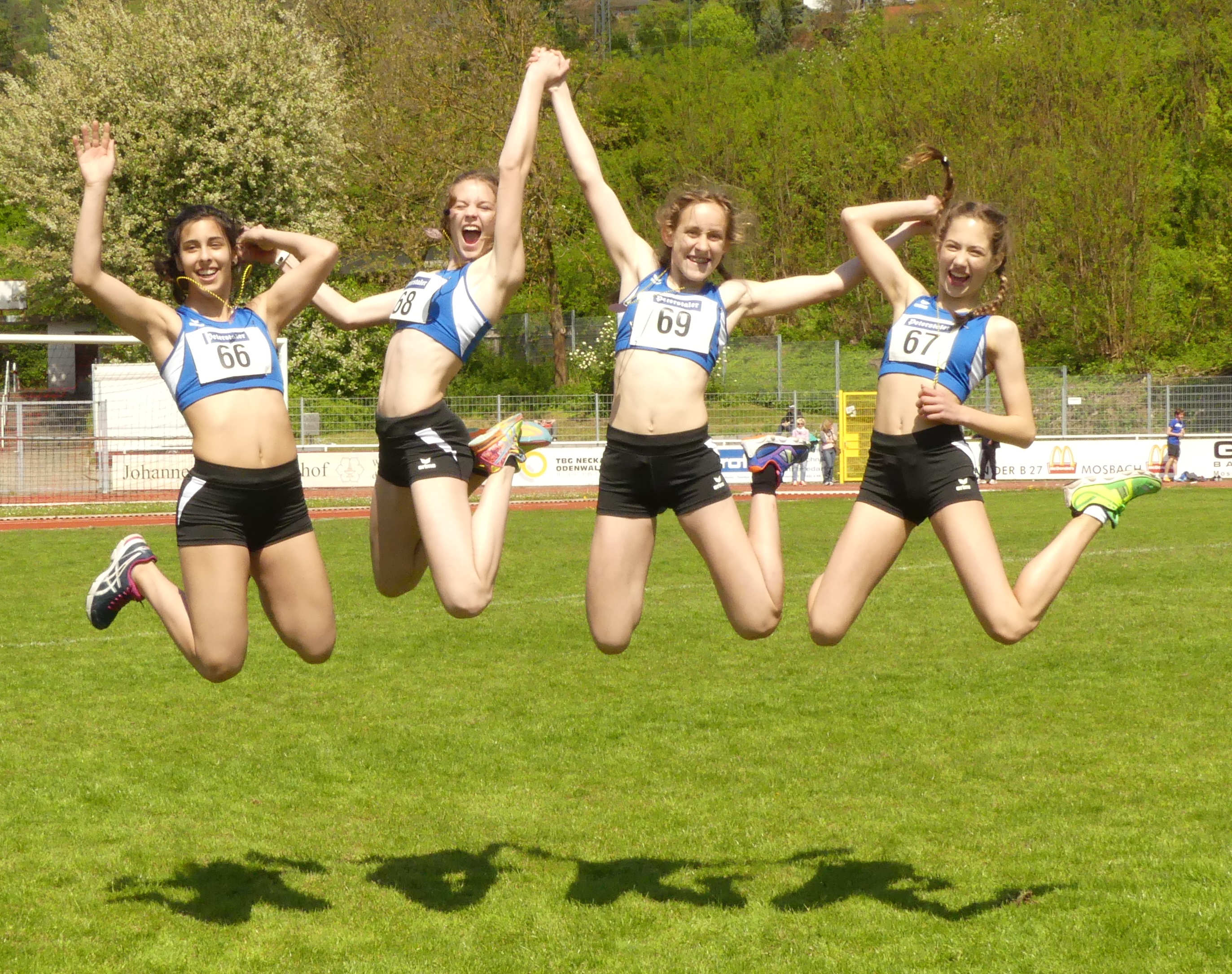 Bronzemedaille für die 4×100 Meter Staffel mit Dana Lang, Helen Fischer, Hanna Altmann und Rachel Fruchtmann (von links)